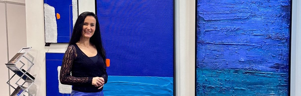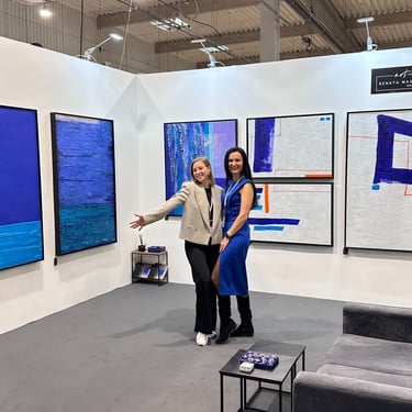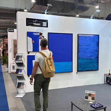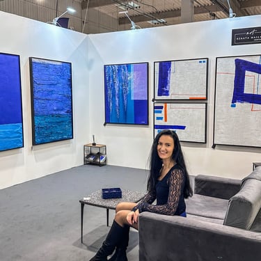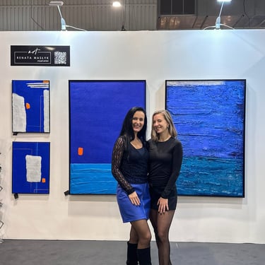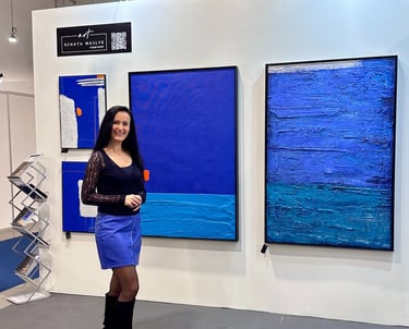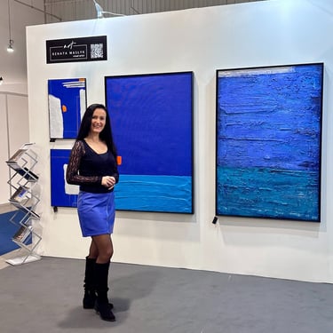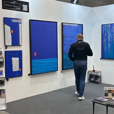 Podczas targów Warsaw Home & Furniture 2025 — jednej z największych imprez wnętrzarsko-designerskich w Europie Środkowo-Wschodniej, odbywającej się w centrum targowym Ptak Warsaw Expo w Nadarzynie (ponad 143 000 m² powierzchni wystawienniczej) — miałam przyjemność zaprezentować swoje obrazy z niebieskiej kolekcji w kontekście sztuki i designu.