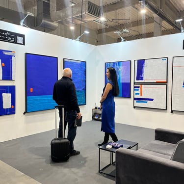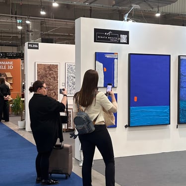 Przez cztery intensywne dni moje prace stały się częścią przestrzeni, w której architekci, projektanci wnętrz, kolekcjonerzy i miłośnicy sztuki wspólnie eksplorowali najnowsze trendy w dekoracji i wyposażeniu wnętrz. Wśród wielu stoisk i ekspozycji, linie geometrii i strukturalne pociągnięcia w moich obrazach w odcieniach błękitu przyciągały uwagę i prowokowały rozmowy o tym, jak sztuka może „zamieszkać” w codziennej przestrzeni.
